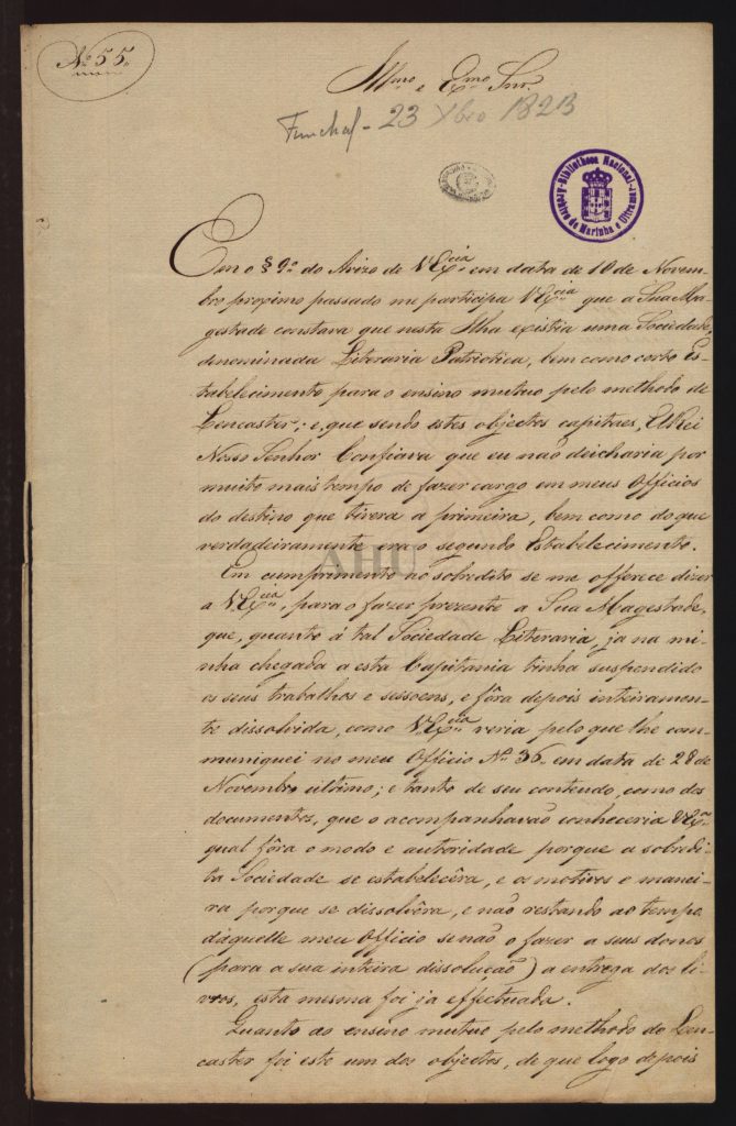 Destaca-se, pelo seu interesse na história da educação em Portugal, o ofício de D. Manuel de Portugal e Castro, de 23 de dezembro de 1823 sobre o ensino mútuo pelo método Lancaster na Madeira, Funchal.