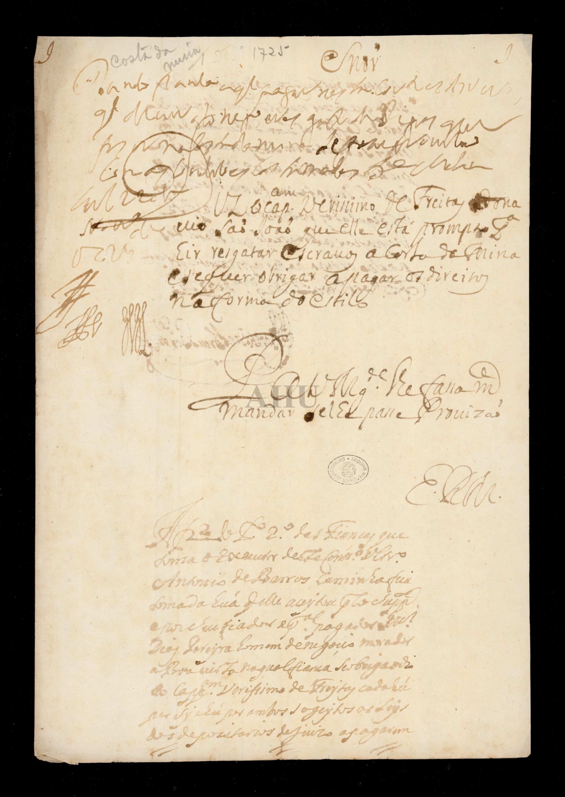 A propósito do Dia Internacional em Memória das Vítimas da Escravidão e do Tráfico Transatlântico de Escravos, assinalado a 25 de março, destaca-se o documento da série São Tomé e Príncipe, fundo Conselho Ultramarino: Requerimento do capitão do navio São João, Veríssimo de Freitas, ao rei [D. João V] solicitando provisão para ir resgatar escravos à Costa da Mina, obrigando-se a pagar os direitos na forma devida.